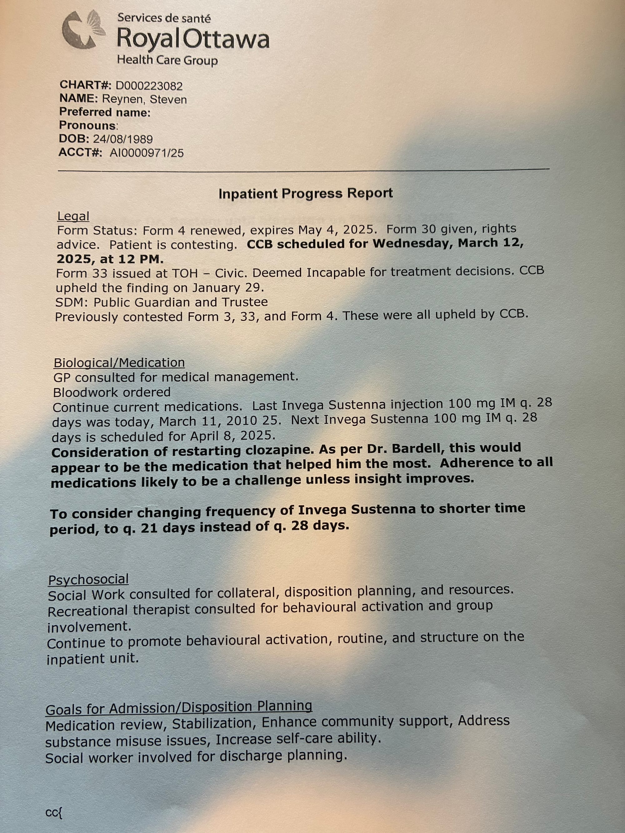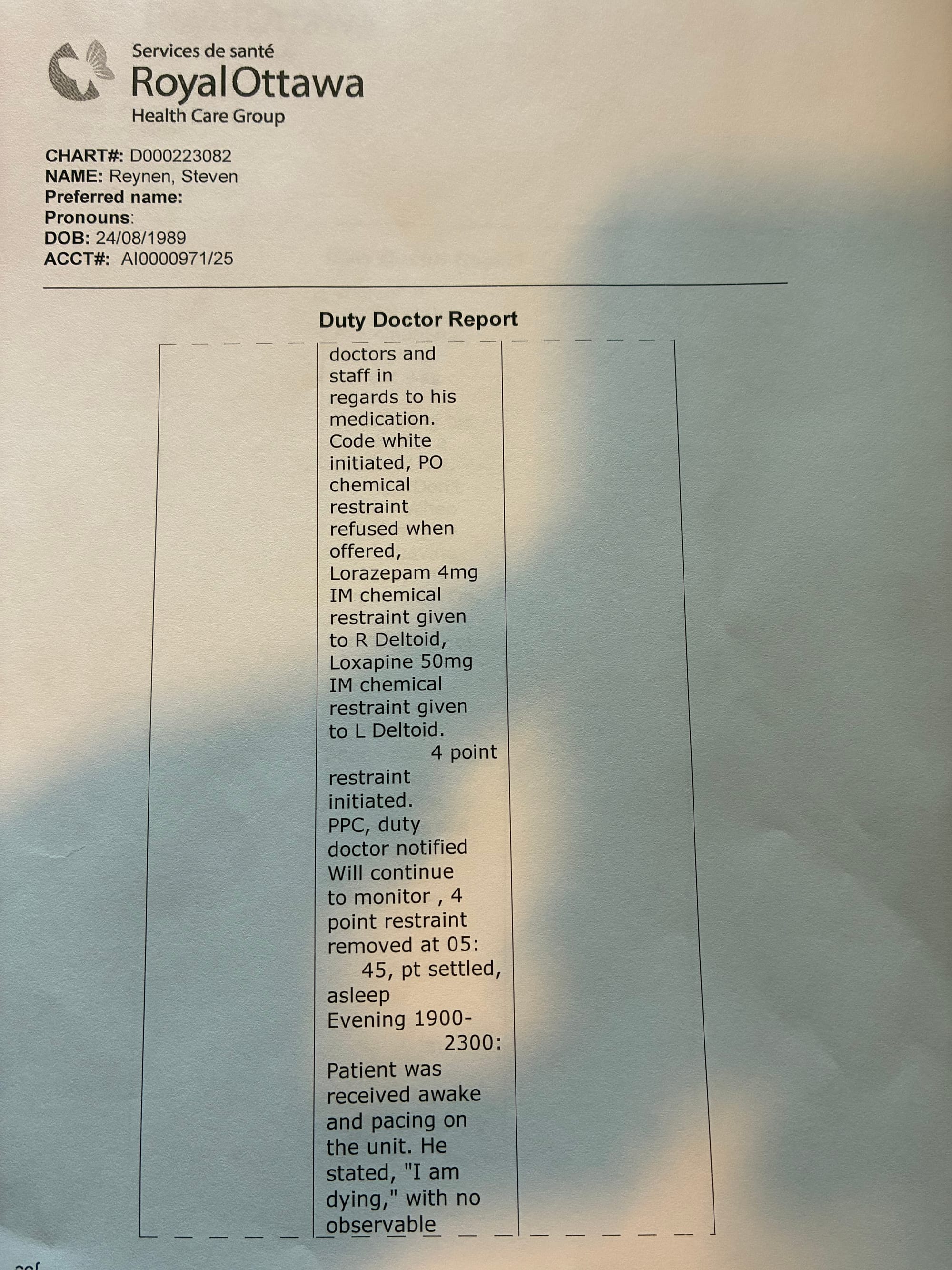 Added these two documents I got from patient records last minute (not the specific records I was looking for) PROVING I was ILLEGALLY TREATED by staff AT THE ROYAL on MARCH 11, 2025 and SEPTEMBER 14, 2025