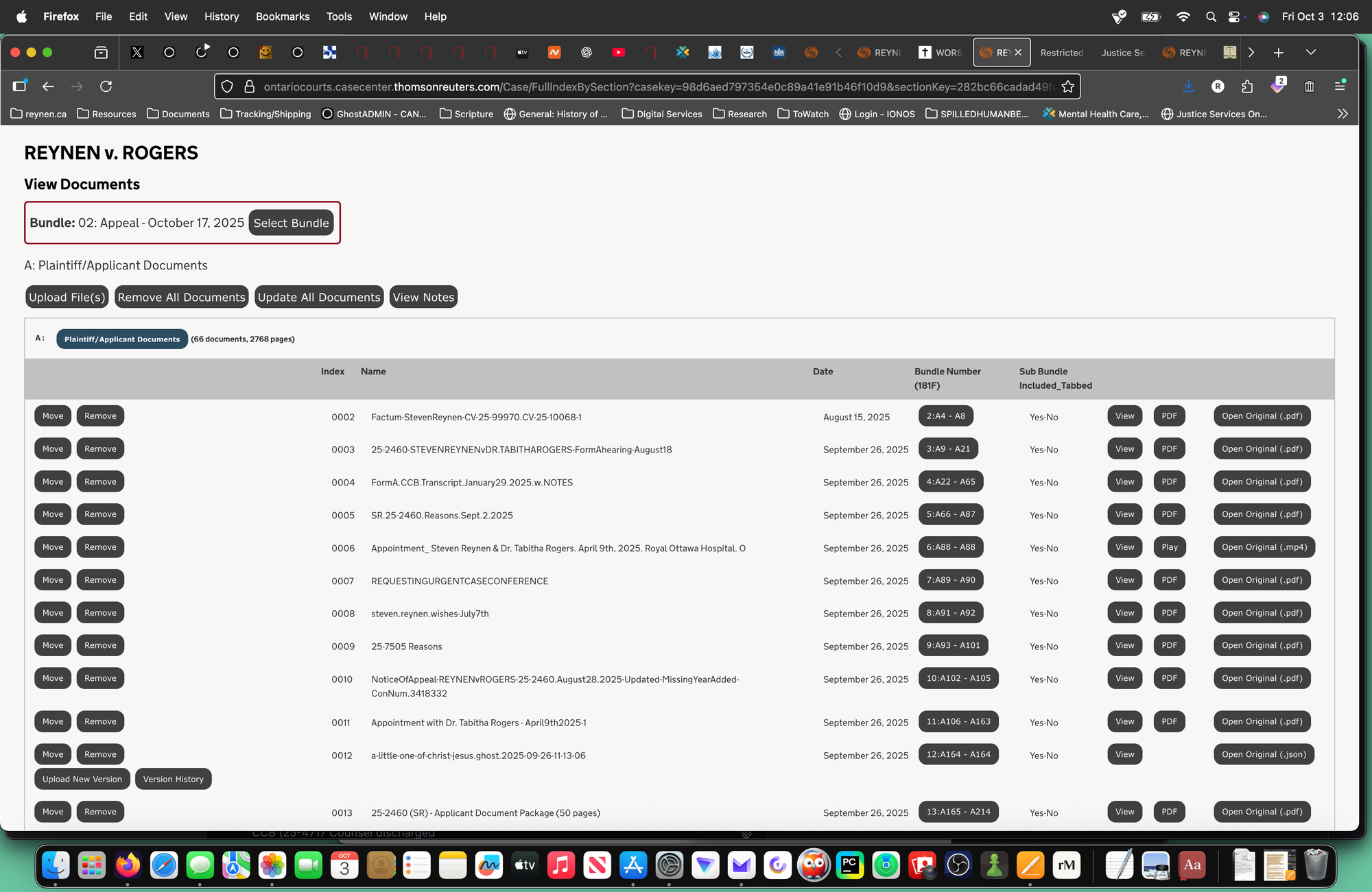Evidence I have submitted to the Case Bundle for CV-25-99970 - October 17, 2025 @ 10:00 - PUBLIC Hearing at the Ottawa Courthouse (Screenshot) - Including EYES WIDE OPEN by FIONA BARNETT (My Big Sister in Christ)