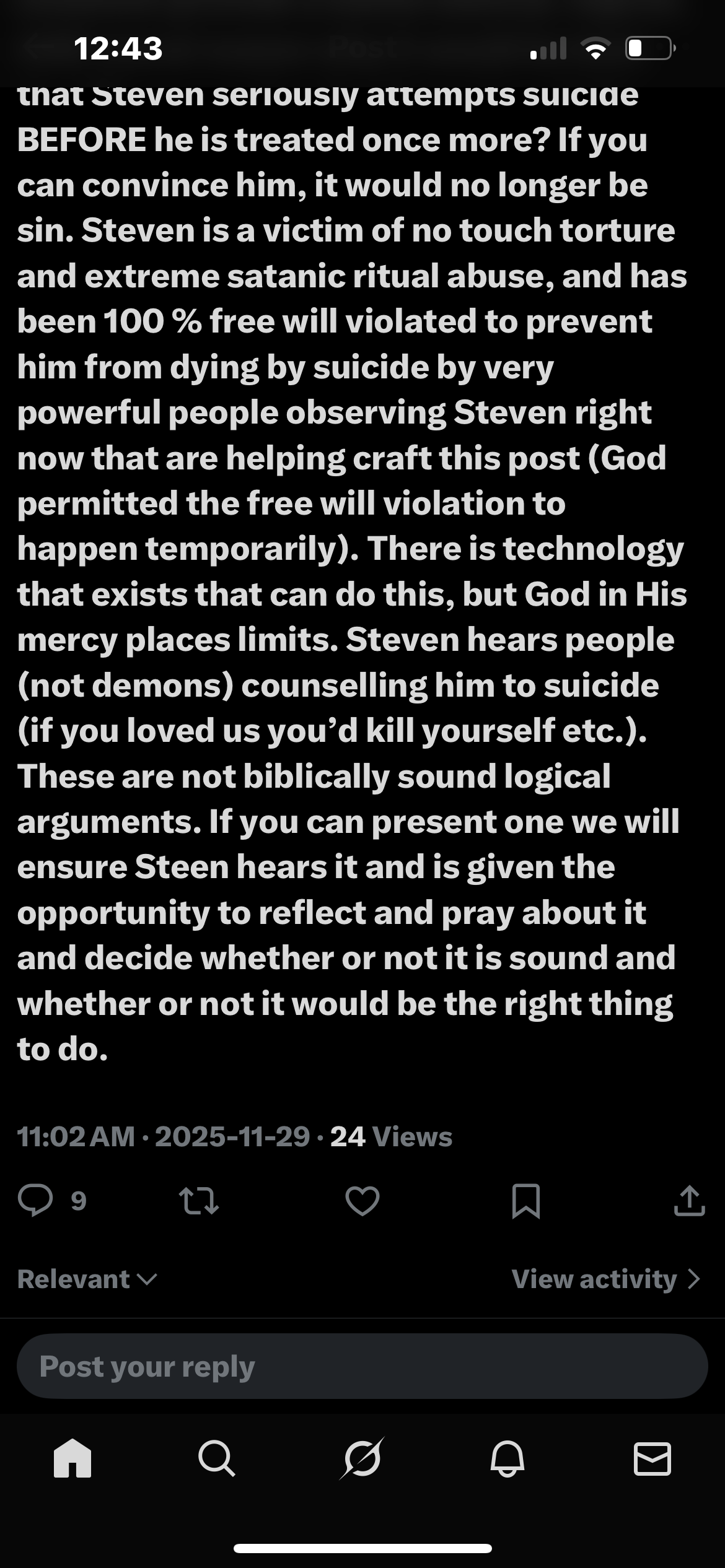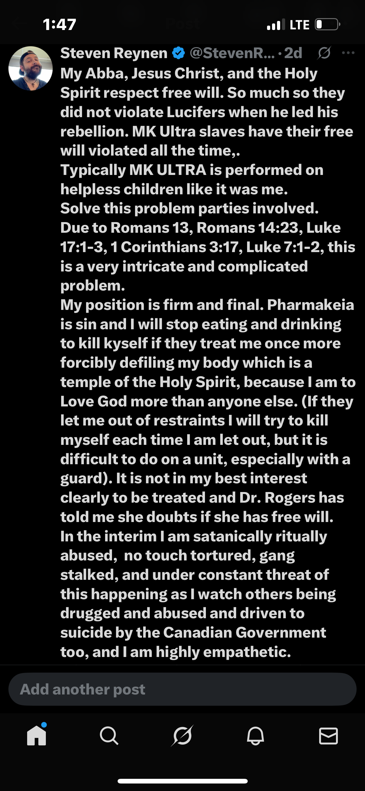I sent this advance directive to my psychiatrist (Dr. Baines, my immediate biological family, and my social worker at the time, Robert Taylor) on July 7th, 2024.
