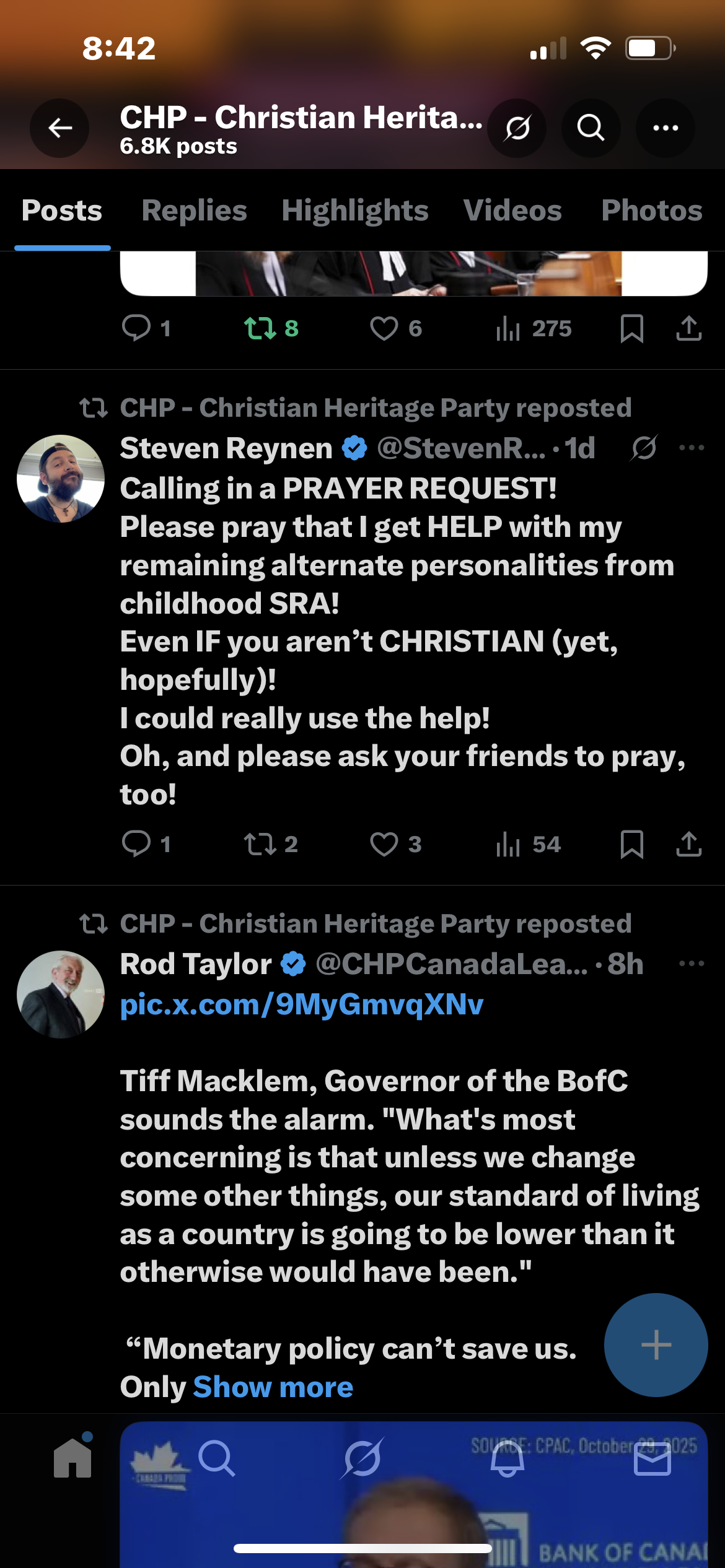 The Christian Heritage Party Reposted my Prayer Request! HALLELUJAH! 2 Corinthians 1:8-11