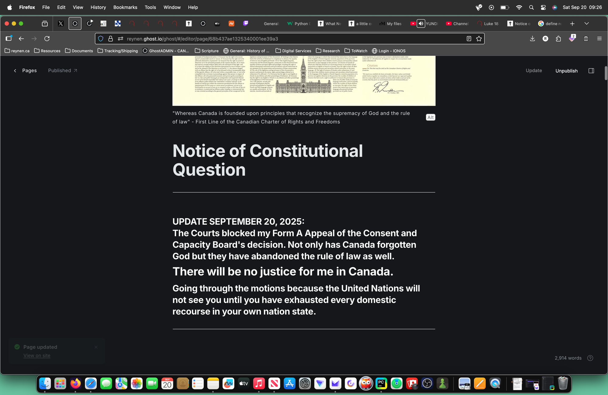 The Courts blocked my Form A Appeal of the Consent and Capacity Board’s decision. Not only has Canada forgotten God but they have abandoned the rule of law as well. There will be no justice for me in Canada. Going through the motions because the United